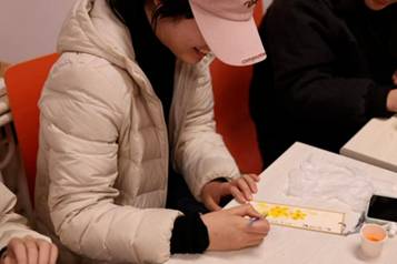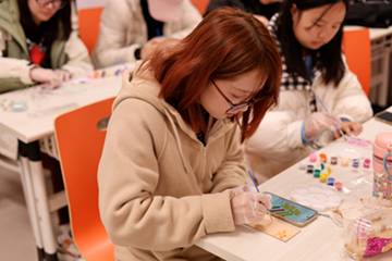 “纸上花香”书签制作环节将活动推向了另一个高潮。在志愿者的指导下,同学们将刚刚采集的花瓣蘸取水彩颜料,制作书签。有的同学以花瓣作画,勾勒出心中的美景;有的同学提笔写下有关花的诗词与寄语。一片片普通的书签,在大家的巧思下,变成了承载着创意与文化情感的独一无二的艺术品。