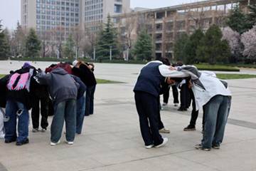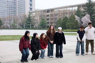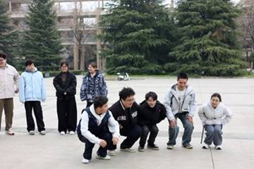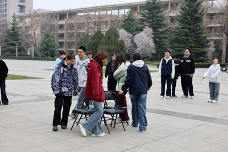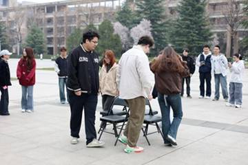 活动在“西大星”旁的广场正式拉开帷幕,参与者们以小组为单位集结,在志愿者的引导下,开启了“花间竞趣”环节。从考验默契的“花开花落”到考验反应力的“萝卜坐”,再到伴随着民族特色音乐进行的“抢板凳”大赛,现场笑声不断,气氛热烈。游戏迅速打破了同学们之间的生疏感,大家手搭着肩、齐声喊着口号,仿佛石榴籽般紧紧相依。